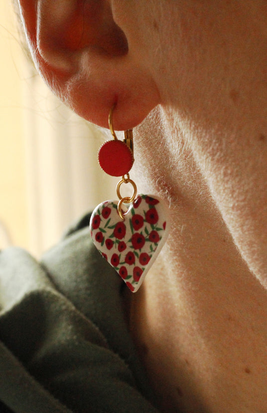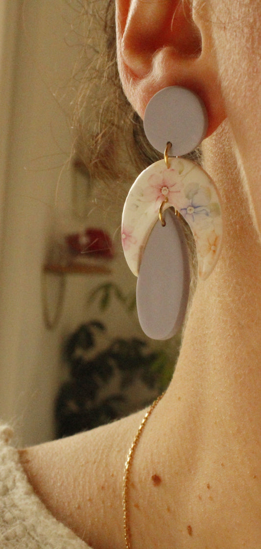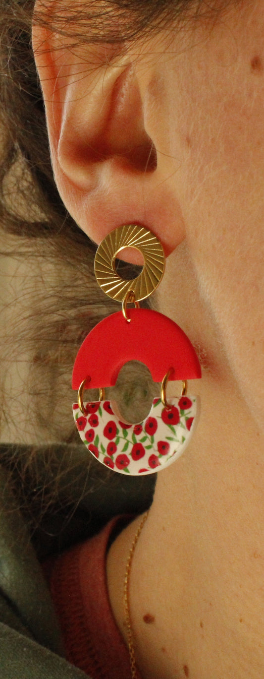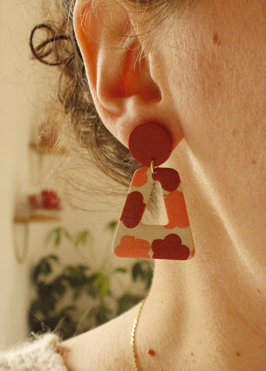 Ici, chaque paire de boucles d'oreilles en argile polymère est fabriquée à la main par Lucie, en Alsace