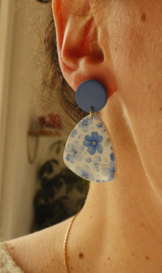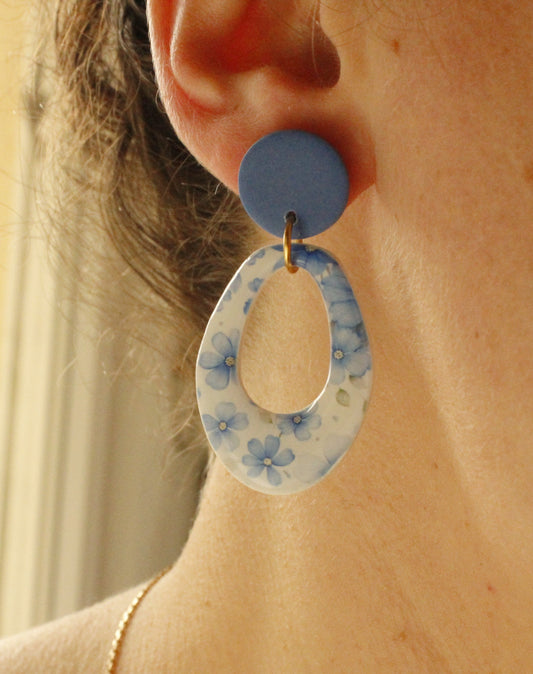 La Bouclette Dorée - Boucles d’oreilles fleuries bleu printanier