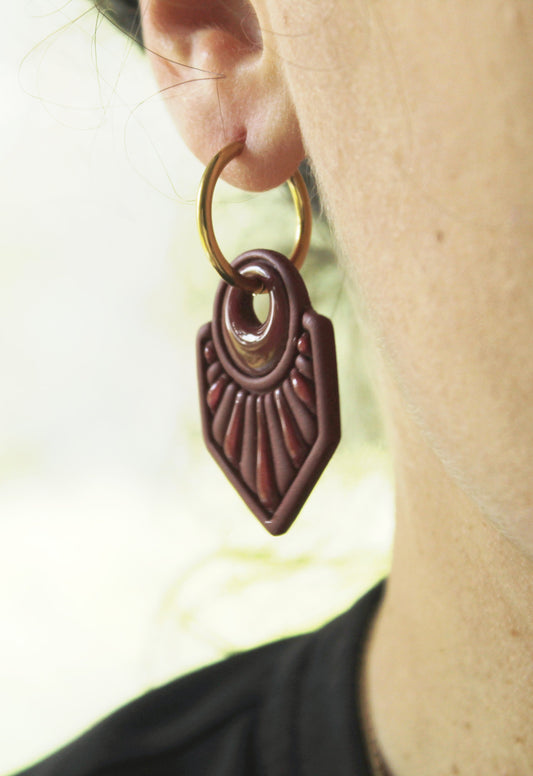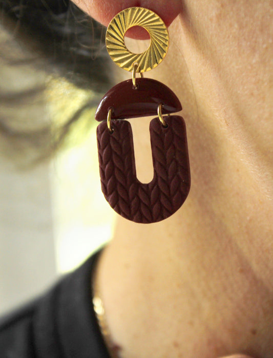 Les boucles d'oreilles la Bouclette Dorée sont fabriquées en argile polymère, chaque paire pèse entre 4 et 8 grammes.