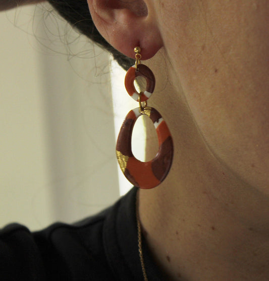 Ici, chaque paire de boucles d'oreilles en argile polymère est fabriquée à la main par Lucie, en Alsace